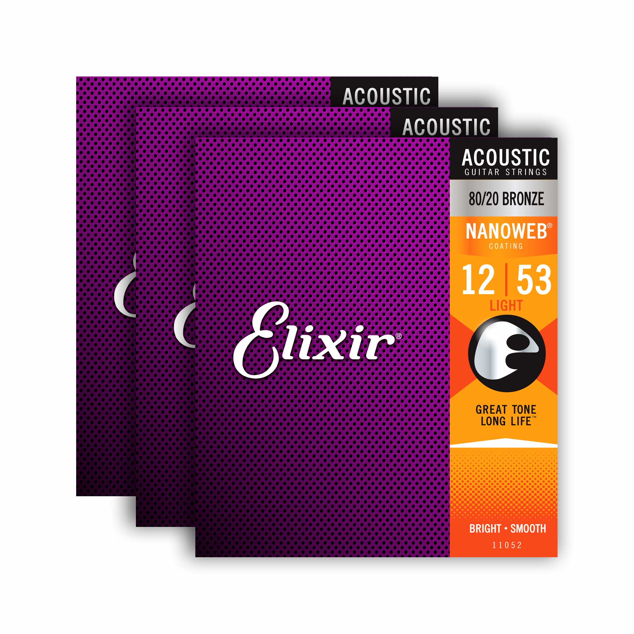Elixir 16539 Nanoweb 80/20 Bronze Light Acoustic Guitar Strings, 12-53, 3-Pack
